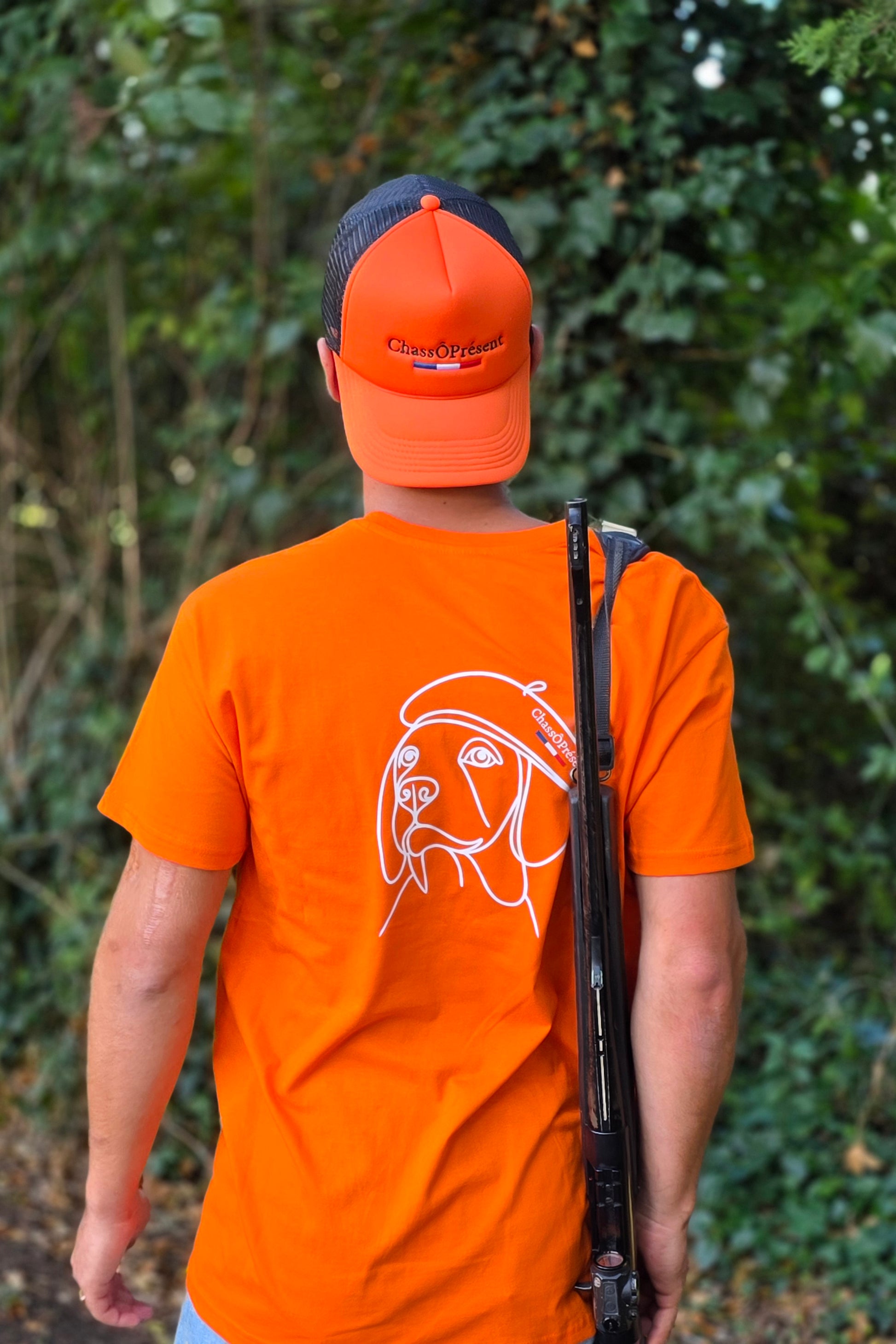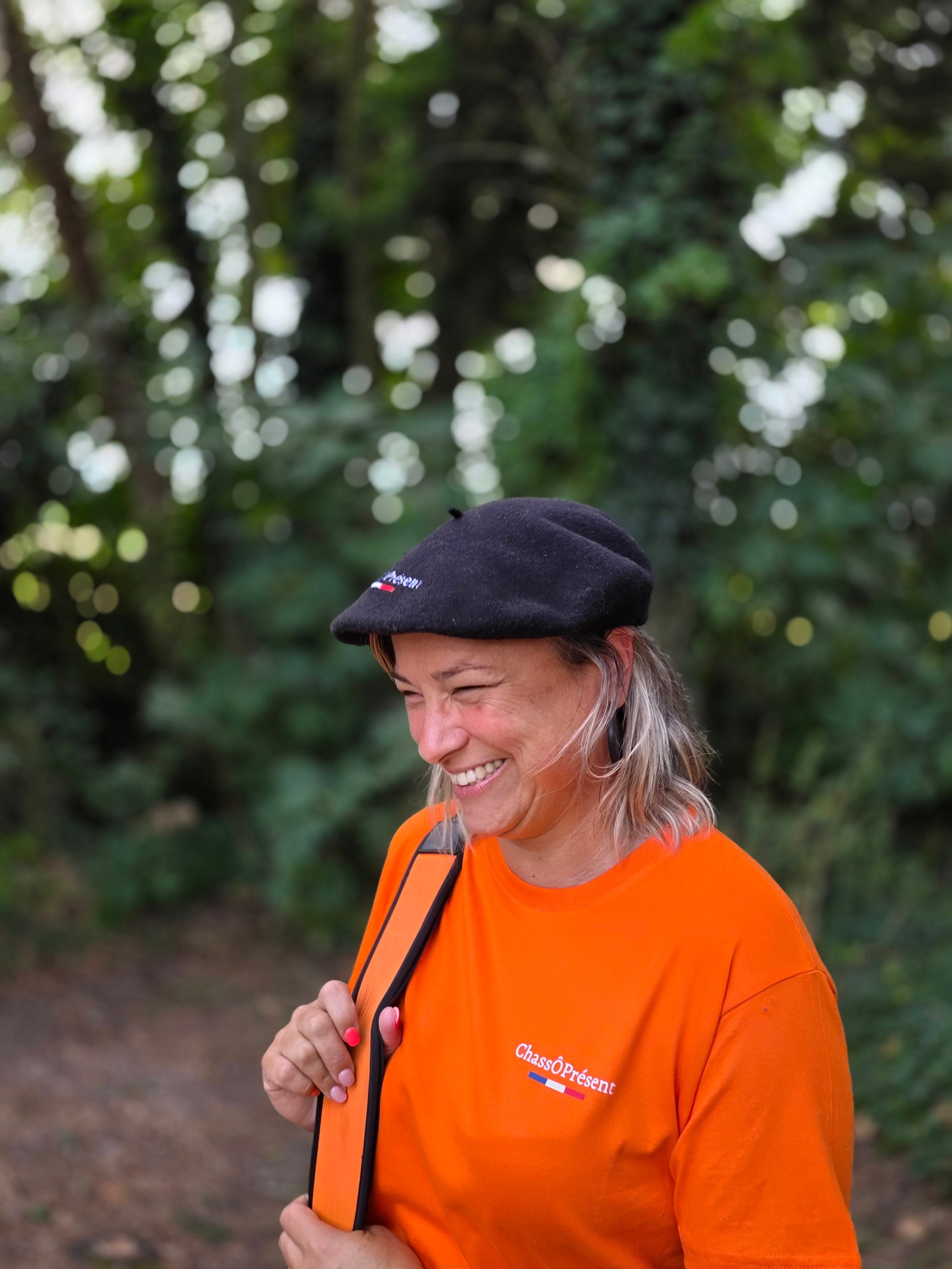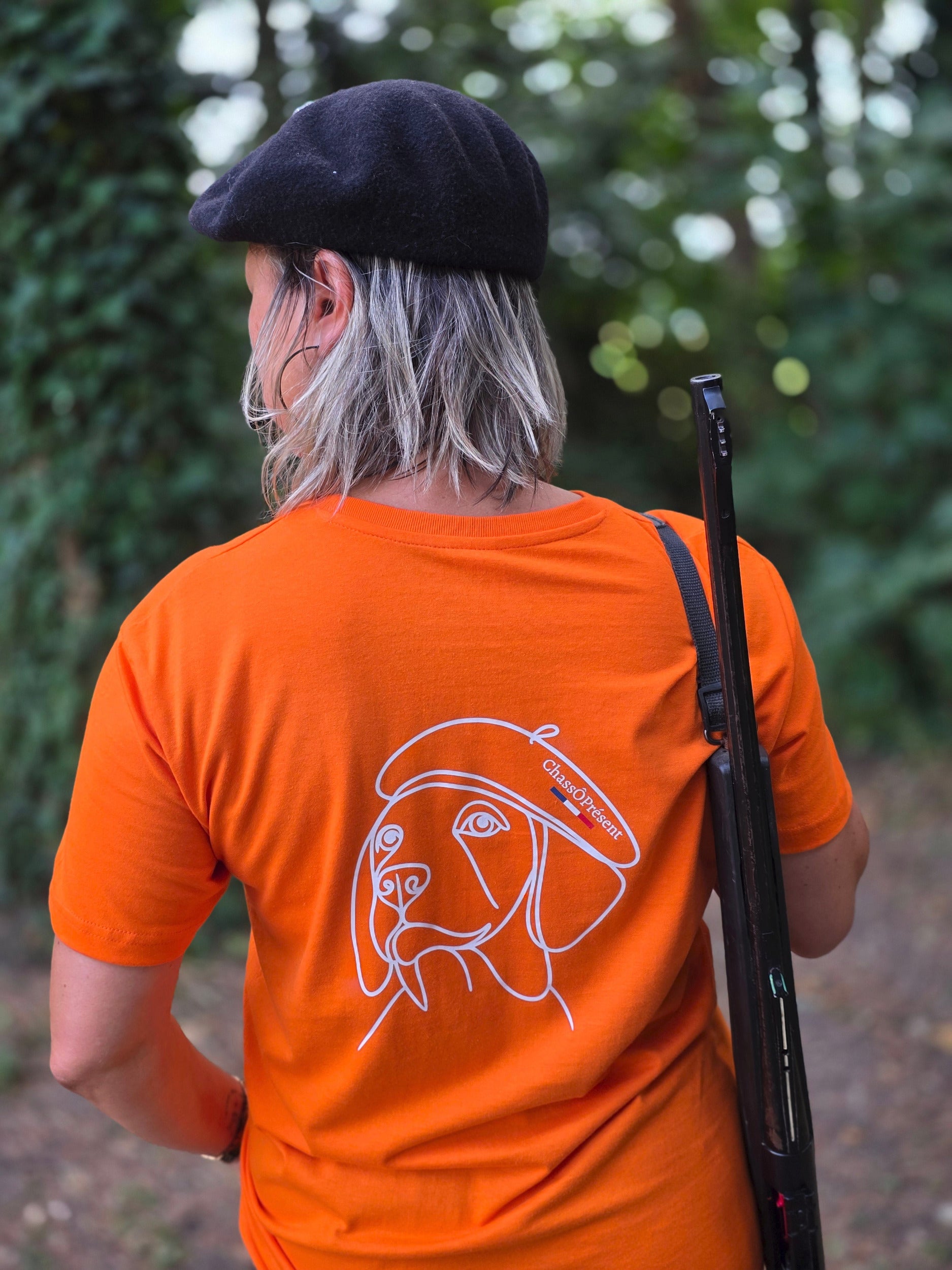 Un chien de chasse stylisé portant un béret reflète l'esprit conviviale et francais